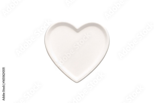 White ceramic heart-shaped dish or plate with raised edges and smooth interior surface, isolated on a transparent background