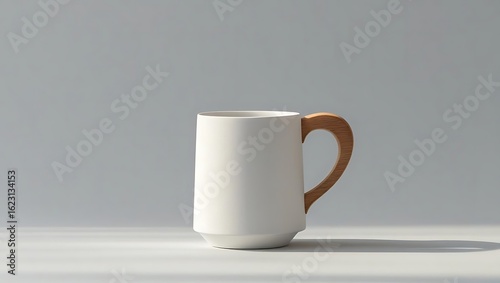 mug, ceramic, white, wood, handle, beverage, drink, kitchen, table, clean, simple, modern, studio, light, shadow, object, container, utensil, tableware, home, interior, design, minimalist, cosy, warm, natural, smooth, matte, empty, single, isolated, product, photo, still, life, everyday, essential, accessory, holder