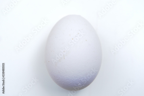 White chicken egg on a white background with shadows