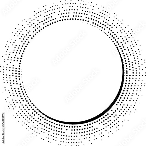 White circle frame and halftone background with copy space. monochrome style on transparent background and png.