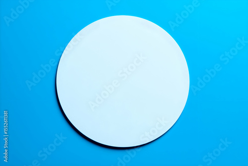 White Circle on Blue Background Top View Simple Geometric Composition. Mock up promotion information for marketing announcements and details, blank white space