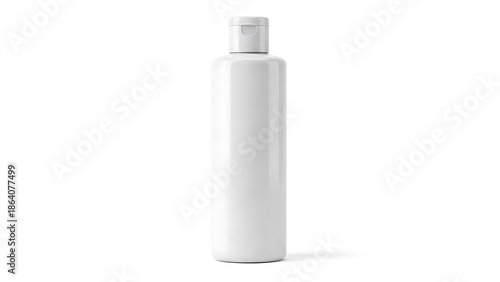 White cosmetic bottle with cap, isolated on white background, product packaging