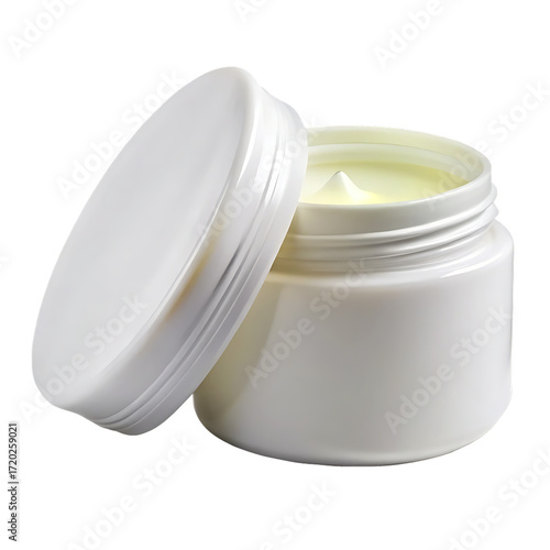 White cosmetic jar with cream and reflection on background container plastic isolated on a transparent background