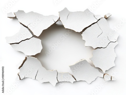 white cracked plaster pieces forming a circle shape against a white background