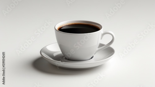 White cup of black coffee on a white background with a clipping path.