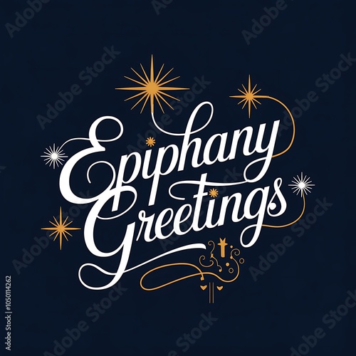 epiphany, greeting, cursive, white, gold, star, blue, background, lettering, calligraphy, design, typography, celebration, holiday, festive, season, religious, christian, christmas, new, year, jan, sparkle, shimmer, graphic, illustration, text, art, element, decoration