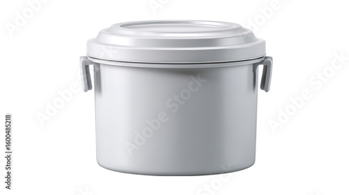 White cylindrical food container with handles isolated on transparent background