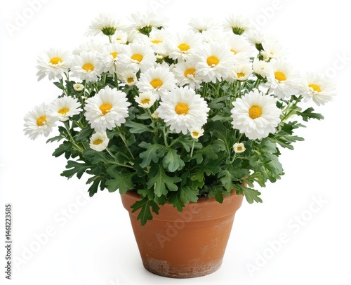 flower, daisy, white, bloom, plant, pot, terracotta, garden, home, decor, nature, beauty, fresh, spring, summer, floral, organic, growing, indoor, potted, bouquet, decorative, closeup, pretty, charming, elegant, natural, simple, minimalist, whimsical, fragrant, leafy, green, foliage, hardy, easy, care, low, maintenance
