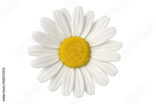 White daisy flower with delicate petals, vibrant yellow center, blooming against transparent backdrop, highlighting botanical purity