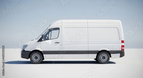White delivery van, side profile, against a plain backdrop, showcasing a modern cargo vehicle.