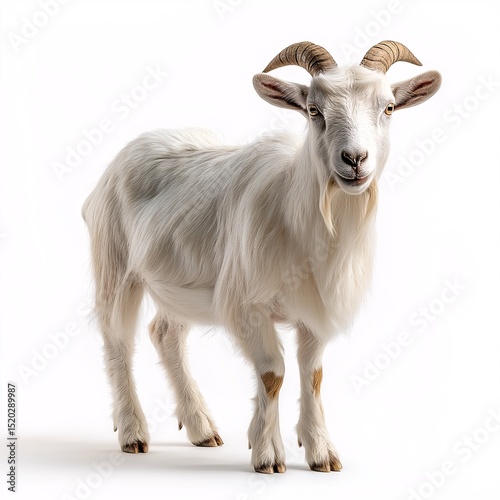White Domestic Goat on a Pastoral Farm. Exploring Cute Animal Portraits & Agriculture Insights