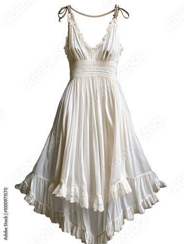 white dress, ruffle, dress, fashion, clothing, garment, style, elegant, feminine, summer dress, casual attire, formal dress, bridal gown, evening dress