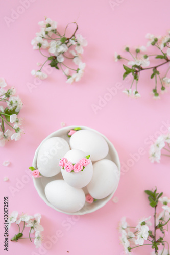 easter, egg, white, food, bowl, holiday, easter egg, spring, pink, background, simple, creative, row, rabbit, abstract, still, minimalism, decor, pastel, up high, decoration, overhead, hipster, tradition, concept, idea, celebration, symbol, art, card, happy, fun, topview, minimal, seasonal, flower