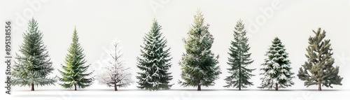 White Fir tree from young plant to fullgrown single object have space between tree, realistic isolated on white background