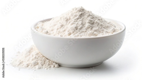 White Flour in Bowl: Clean, Minimalist Studio Shot of Baking Ingredient.