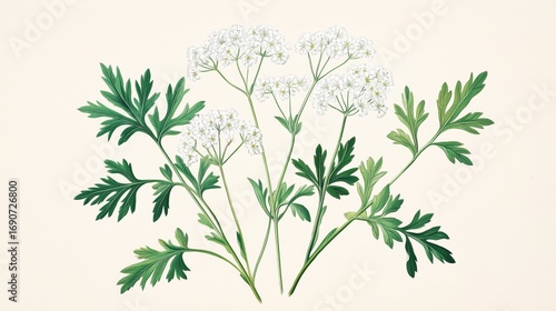 white flower, green leaf, plant, nature, floral, garden, herb, foliage, beauty, outdoors, spring, blooming, wildflower, freshness, aesthetic, design, calmness, growth, herbaceous, flowering plant, floral arrangement, illustration, decoration, greenery, ornamental, artistry, composition, intricacy, elegance, peaceful, serene, still life, seasonal