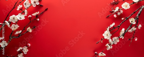 flower, blossom, cherry, tree branch, white, red, background, floral, nature, spring, bloom, flower petals, delicate, fragile, plant, bud, tree, stem, leaf, green, texture, natural, beauty, symbolism, art, photo, design, graphic, minimalism, frame, border, arrangement, composition, celebration, holiday, colours, contrast, sharpened, high-coloured, decorative, christmas, card, decoration, love, nubes, valentine, flower, pattern, illustration