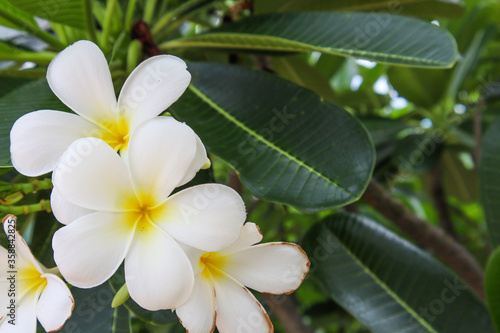 White flowers, white plumeria flowers in a natural garden