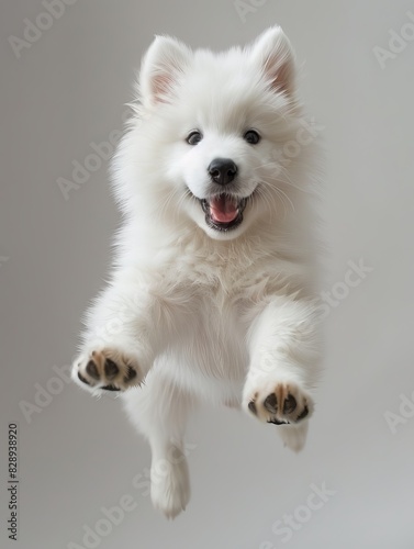 dog, animal, mammal, pet, breed, white, indoor, spitz, puppy, jump, paw, fluffy, jumping, air