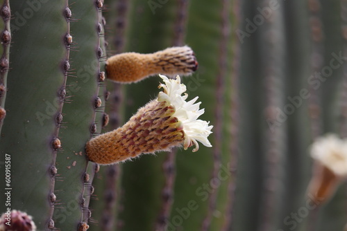 White funnel-shaped flower of the Pachycereus pringlei cactus