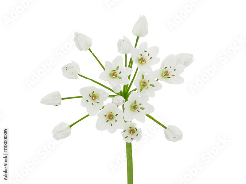 White garlic flower isolated on white background, Allium neapolitanum