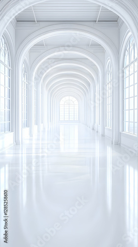 hallway, architecture, interior, white, design, building, room, arch, elegant, roomy, light, bright, modern, clean, luxury, contemporary, minimalist, style, home, office, space, background, corridor, gallery, pathway, grand, majestic, window, wall, floor, perspective, serene, peaceful, calm, tranquil, simplicity, elegance, sophistication, abstract, art, image, photo