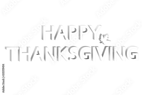 white Happy Thanksgiving word with leaf isolated on white background - typography 3d render flat style