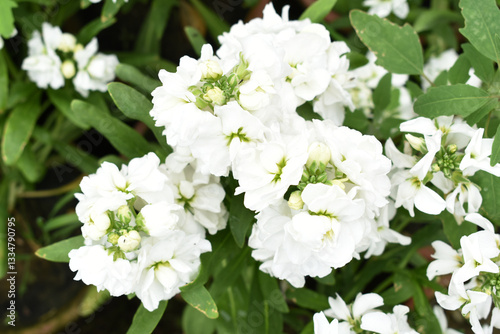 White Hoary Stock, White Hoary Stock or Matthiola Incana is a member of the Brassicaceae family of flowering plants. It's also commonly known as Brompton Stock, Common Stock, White flower in garden