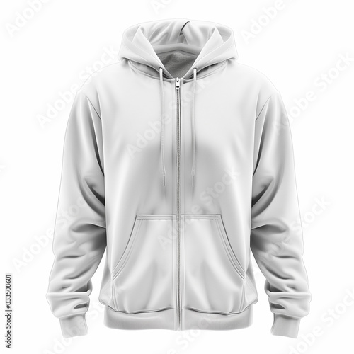 White Hoodie with Zipper, Hood, and Pockets, Isolated on White Background - Perfect for Apparel Design, Custom Printing, and Branding | 4K Wallpaper, Mockup