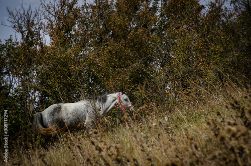 white horse in field