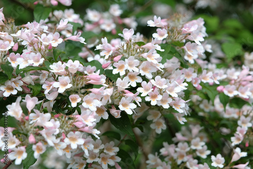White Kolkwitzia amabilis, Beauty Bush in flower.