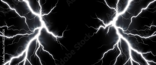 White lightning bolts radiate inward, forming a dynamic abstract design on black, thunder, futuristic