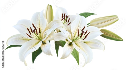 White Lilies Bouquet on a White Background
