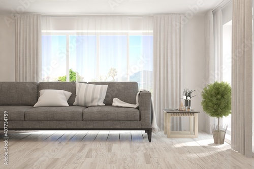 White living room with sofa. Scandinavian interior design. 3D illustration
