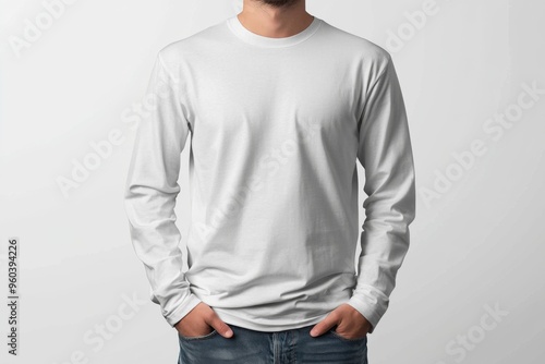 White Long Sleeve Tshirt Mockup Isolated created with Generative AI