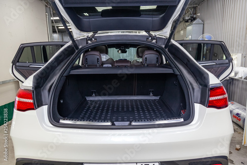 car, trunk, open, empty, suv, boot, space, nobody, behind, modern, back, design, background, travel, new, small, transportation, transport, automobile, baggage, auto, view, journey, drive, comfortable, personal, automotive, rack, roomy, hatchback, roomy, clean, rear, black, concept, interior, object, technology, luxury, little, road, vehicle, leather, carpet, mat, floor, rubber, brown, chrome, detailing