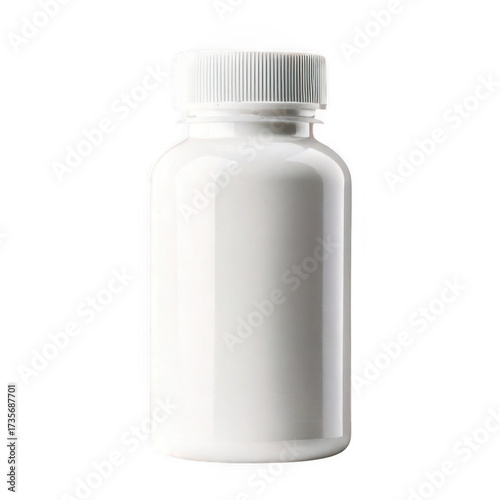 White Medicine plastic bottle with blank label isolated on transparent background.
