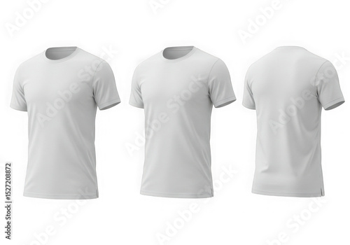 white, t-shirt, clothing, apparel, t-shirt, template, front, view, side, back, three, isolated, transparent, background, design, product, realistic, three-dimensional, rendering, fashion, blank, short, sleeve, crew, neck, casual attire, wear, graphic