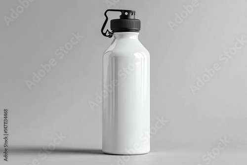 bottle, water, metal, sport, hydratation, portable, recyclable, travel, camping, hiking, gym, fitness, healthy, drink, beverage, capacity, insulated, vacuum, carry, clip, cap, lid, black, white, empty, product, design, advertising, promotional, template, illustration, graphic, promo, display, marketing, blank