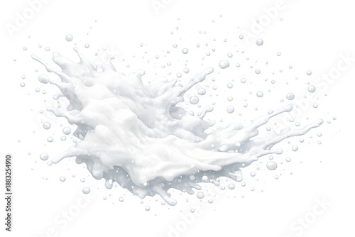 White milk splash creating dynamic liquid motion with many droplets flying, transparent background, refreshment concept