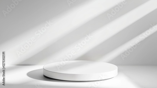White minimalistic display stand, clean and modern circular platform with soft shadows, luxury product showcase, 3D illustration
