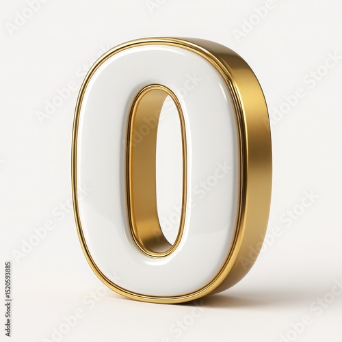 White Number Zero with Gold Frame 3D Rendering