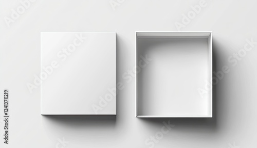 White open empty box mockup, top view, isolated on a transparent background. Vector illustration in white color, high resolution, professional photograph. The ultra-realistic photography style,