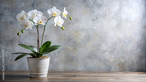white, orchid, plant, flower, decorative, pot, indoor, gardening, nature, elegant, delicate, beautiful, bloom, flower petals, botanical, tropical, greenery, fragrant, houseplant, exotic, decor, photo, spring, vibrant, closeup