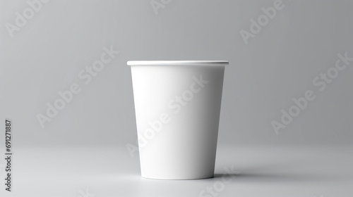 white paper cup close up. tasty on white table. Exhibition equipment.