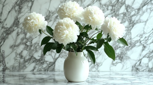 peony, white, vase, flower, marble, bouquet, still, life, background, bloom, spring, summer, beauty, elegance, nature, floral, decoration, arrangement, romantic, wedding, design, plant, blossom, fresh, purity, serenity, peace, calm, gentle, soft, delight, lovely, pretty, elegant, exquisite, chic, luxury, home, decor, interior, table, photo