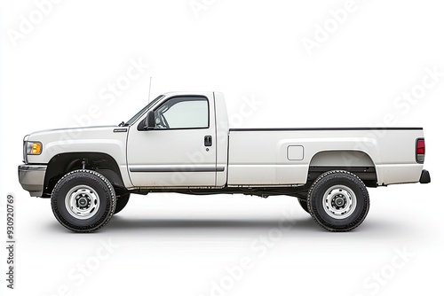 White Pickup Truck Isolated on White Background - Side View of a Modern Single Cab Vehicle