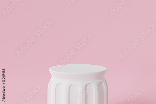 White pillar podium or pedestal for products or advertising on pink background, minimal 3d illustration render