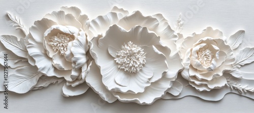 White Plaster Floral Texture, Studio Shot, Intricate Carving Details, Clean Stock Photo Style