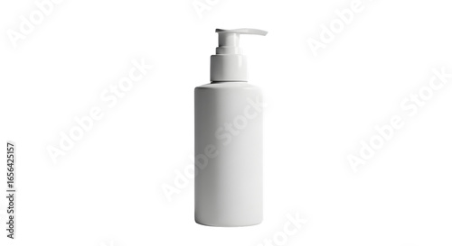 White plastic bottle with pump dispenser against black background
